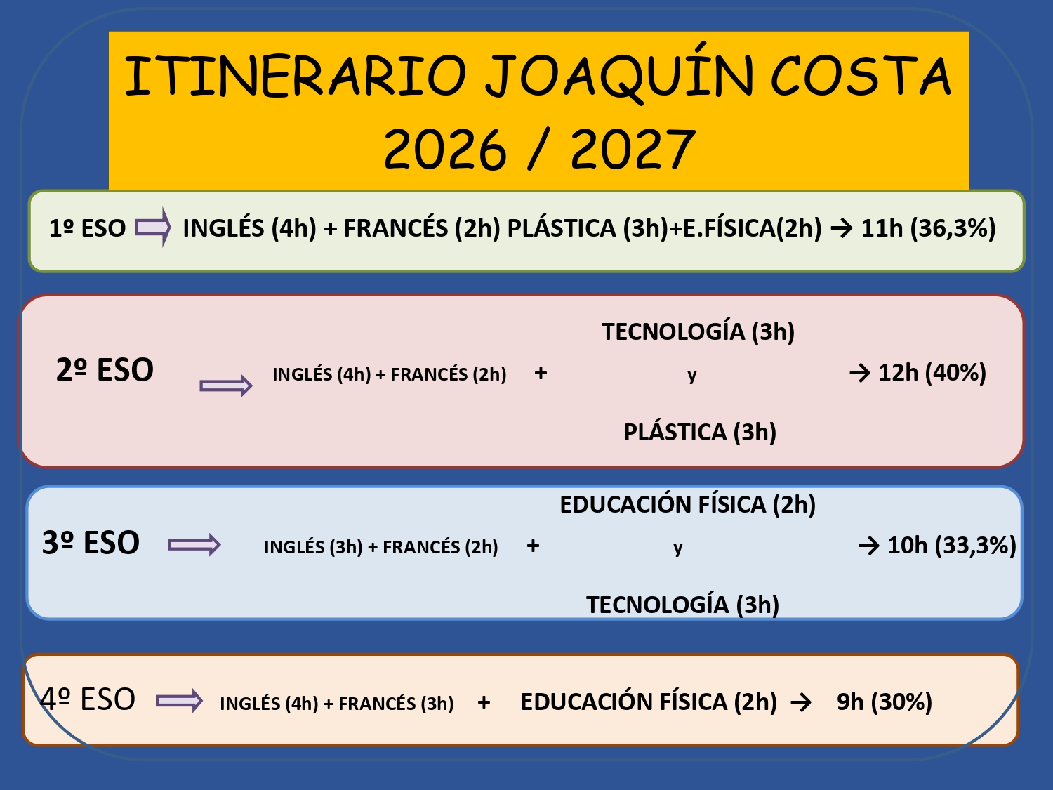 encontraréis la propuesta consensuada desde el centro. No es un documento inamovible, curso a curso puede ser modificado en función de la disponibilidad de profesorado, cambios en la distribución lectiva, etc.