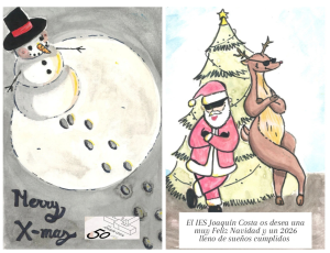 Todo el equipo que formamos el IES Joaquín Costa os deseamos una muy Feliz Navidad y un Próspero 2026 con la tarjeta ganadora de nuestro concurso de Postales Navideñas de este curso. Autora: Inas El Saidi. ,(2° ESO). Nos vemos el próximo día 7 de enero. Hasta entonces, el centro permanecerá cerrado. Muchas gracias.