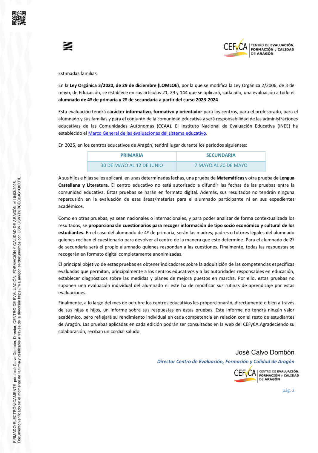 En las cartas adjuntas se explica todo el proceso en diferentes idiomas. Próximamente recibirán unas encuestas para cumplimentar que se tendrán en cuenta a la hora de elaborar el contexto de nuestro alumnado. Las fechas de las pruebas (Lengua castellana y Matemáticas) son secretas para evitar cualquier tipo de filtración o preparación de las mismas.