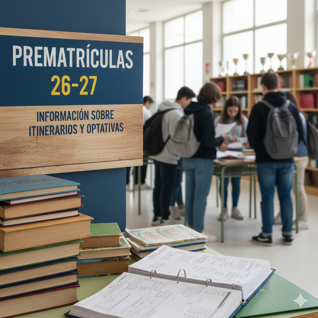 Durante estos días, el alumnado debe rellenar las «prematrículas» del curso siguiente. Es muy importante seleccionar bien las optativas porque esta hoja de inscripción tendrá carácter vinculante en caso de que el centro no pueda ofertar todas las optativas.